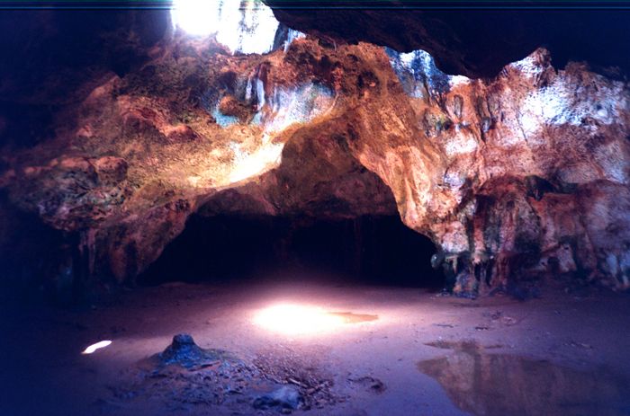 “In Fontein Cave there are ancient cave paintings from the indians who lived there. Guadirikiri Cave, which has the hole in the top that allows the sunlight to pour in has a legend to it that states that an Arawak chief had a beautiful daughter who fell in love with the wrong man. The chief imprisoned his daughter in the guadirikiri cave to stop her from marrying the lover that he felt was not suitable for her. Her lover was also imprisoned, but in a different, nearby cave, and eventually they found each other. After being reunited the two mounted the skies on beams of light, which is where the holes in the roof of the Guadirikiri Cave is believed to have come from.”