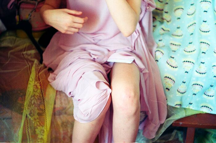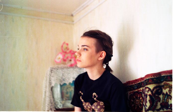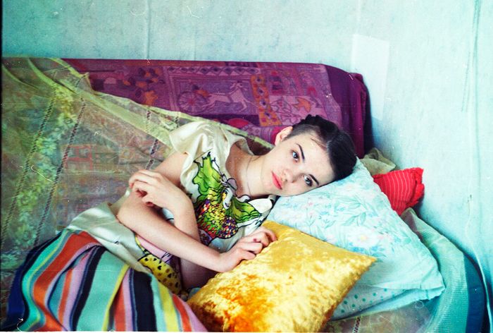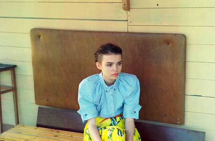 Alena wears striped skirt by Mina Perhonen and t-shirt by Tsumori Chisato.