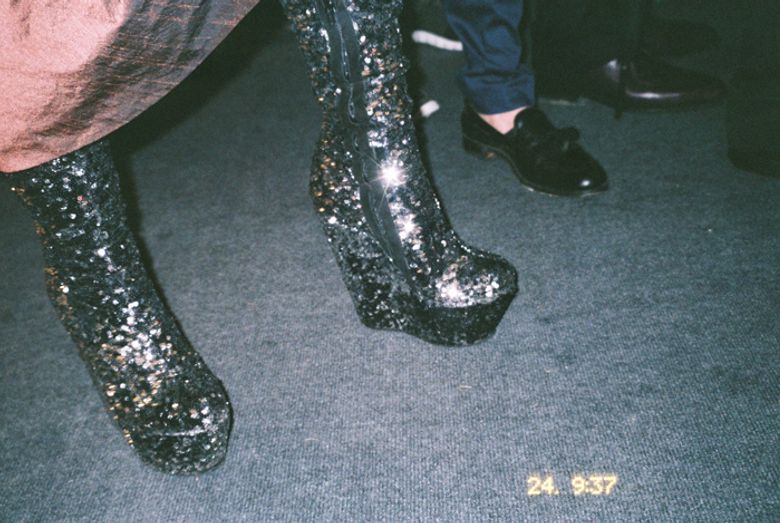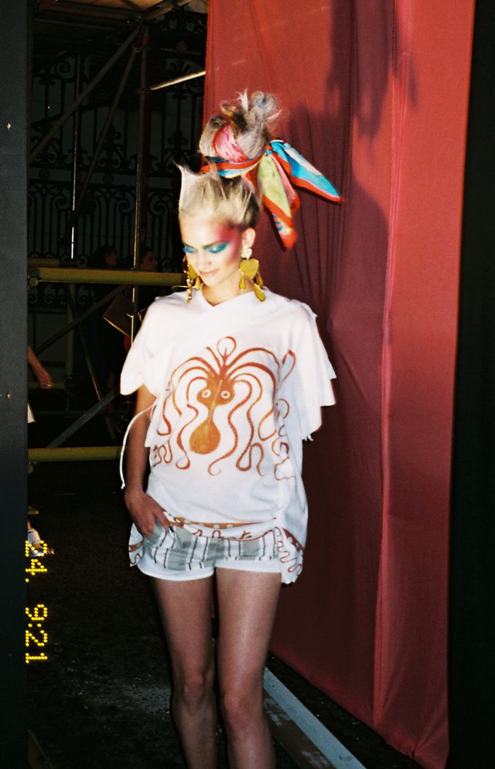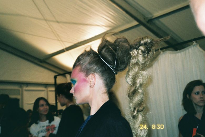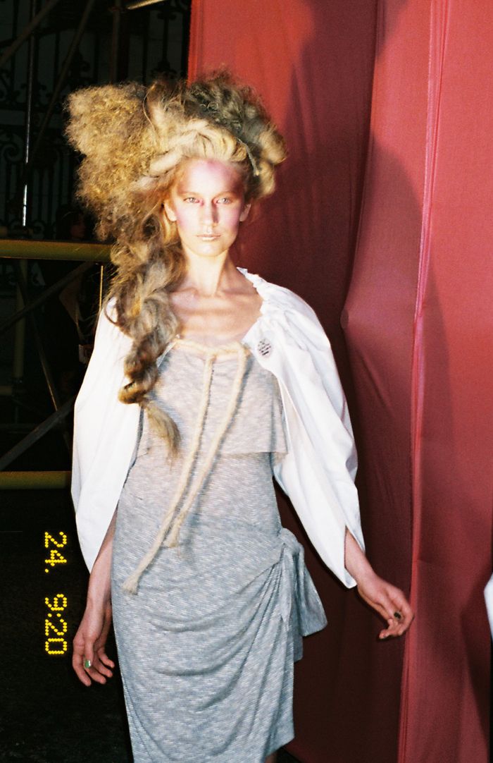 Massive hair, colourful make up and wearable clothes with lots of knitwear, draped dresses and fabulous tailoring!