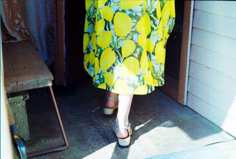 Alena wears striped skirt by Mina Perhonen and t-shirt by Tsumori Chisato.
