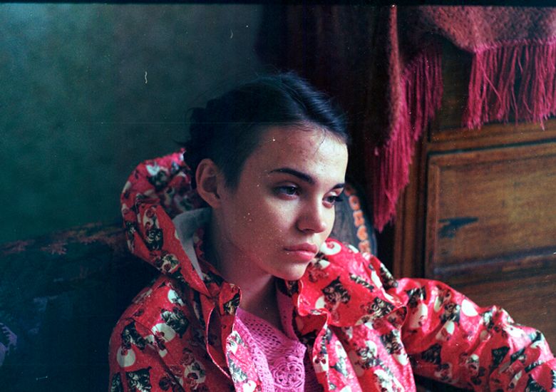 Alena wears t-shirt by Tsumori Chisato.
