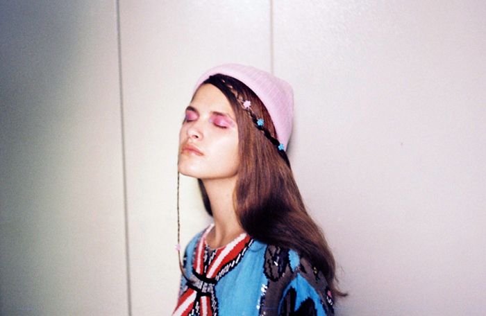 On the right picture Yulianna wears dress by Topshop, shoes by Balenciaga, sequin dress by Ashish, knitted hat by Topshop.