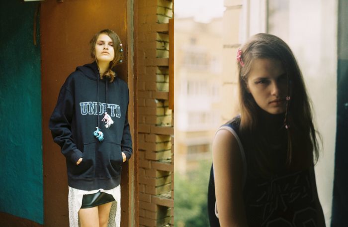 On the left picture Yulianna wears hoodie by UNDEFEATED, skirt by H&M.