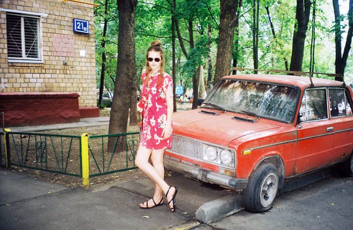 On the right picture Yulianna wears dress and shirt by Fred Perry, skirt by Topshop, sunglasses – model’s own.