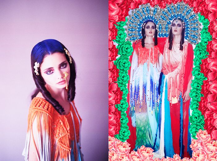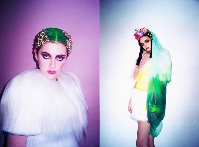 On the right picture Paige wears fur top and skirt by Andrei Amado, tiara customised using Chichi Luo designs, hand made bracelets from Russian crafts market