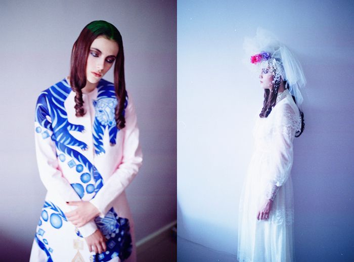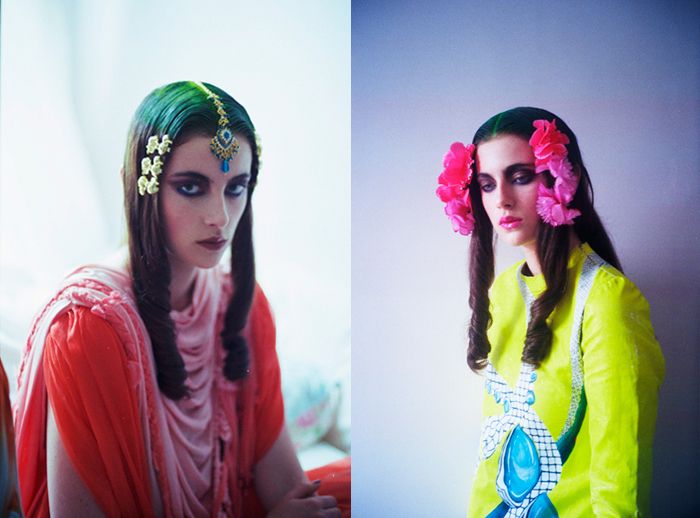 Right: Minnie wears vintage dress and vintage headpiece Beyond Retro