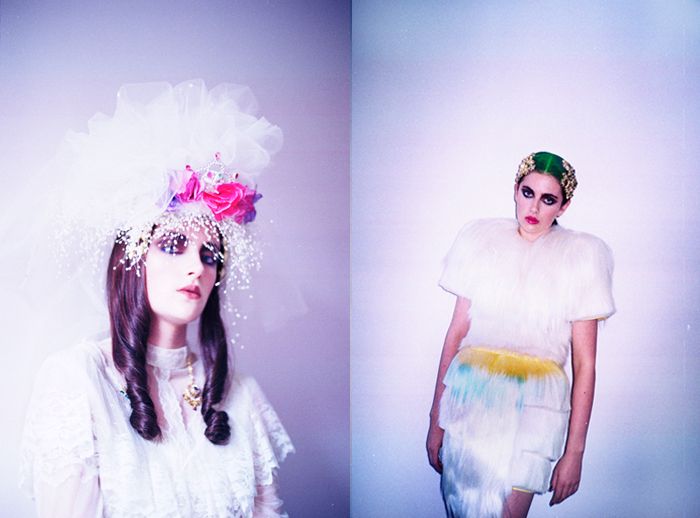 Left: Minnie wears vintage dress and vintage headpiece Beyond Retro