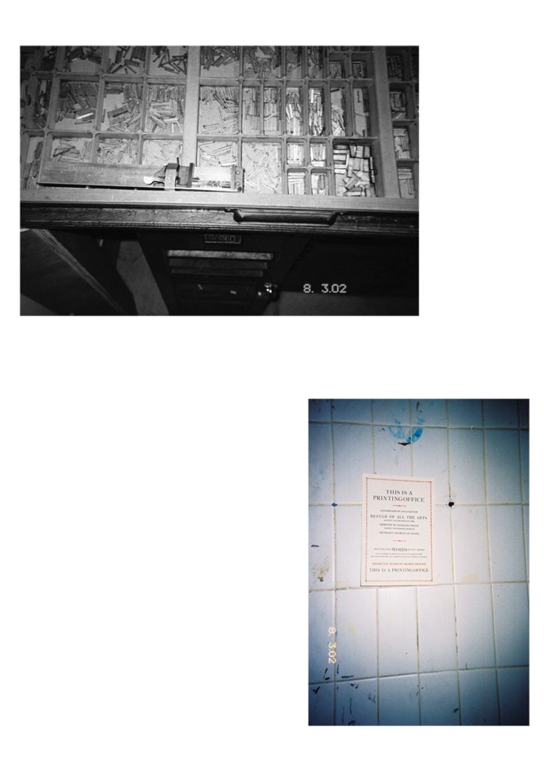 “Letterpress monster” is his name. His office is full of recycled posters or simply leftover drawings, which were thrown away. He is playing his collection of old records, you are smelling oils and white spirit, something special is happening. This place is out of time. It is indeed an exceptional place – “Grey Gardens” of the letterpress.