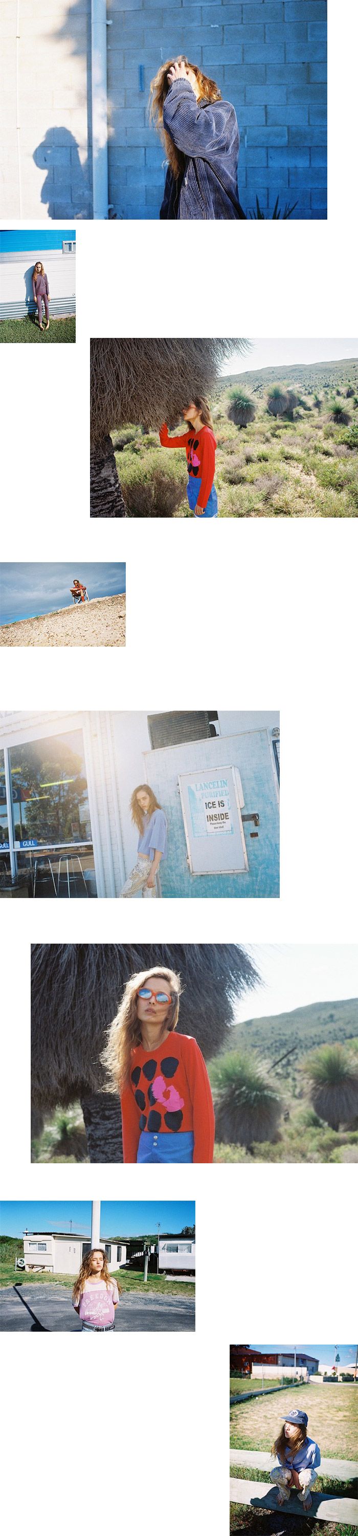 1. Isabel Marant shorts, vintage billabong top and jacket, explorer socks, Emu Ballina boots2. Mountain designs thermals3. Comme de Garcon top, vintage Rip Curl shorts, stylist’s own sunglasses, Emu Ballina boots, explorer socks4. Isabel Marant pants, vintage rip curl shirt and vintage hot tuna hat