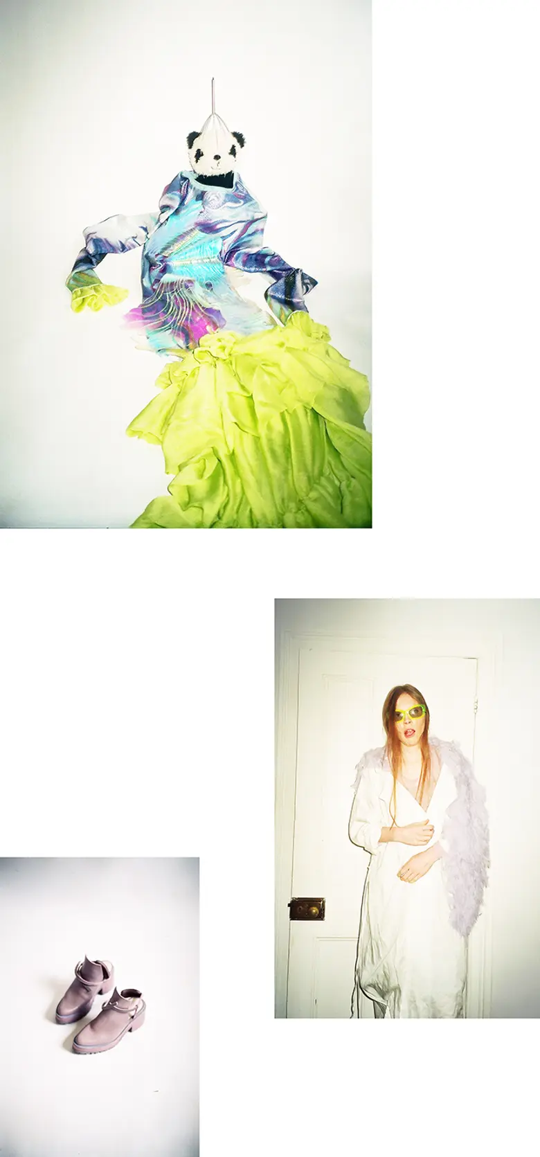 The same as above*(White coat, leans shorts and purple top- all by Marques Almeida