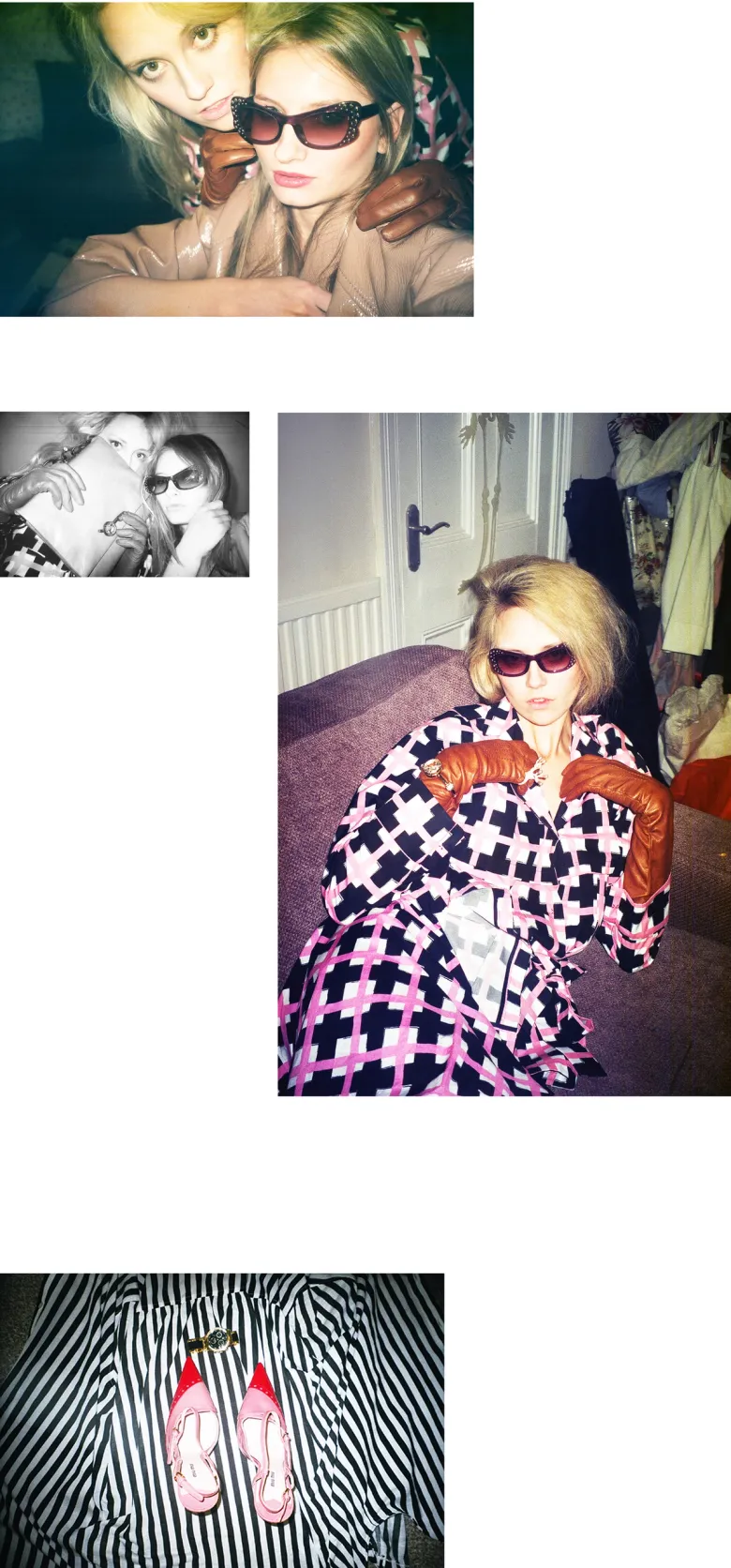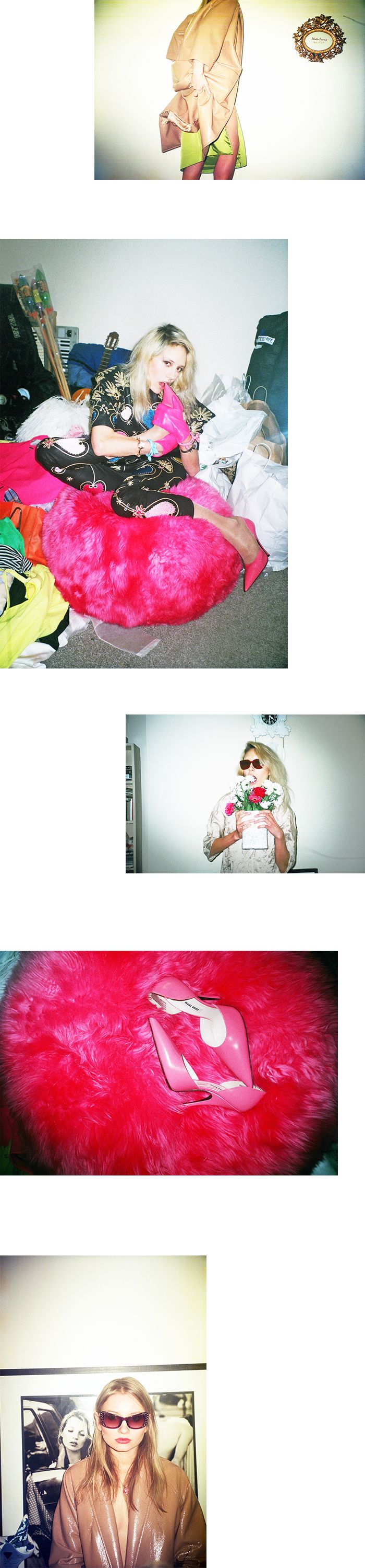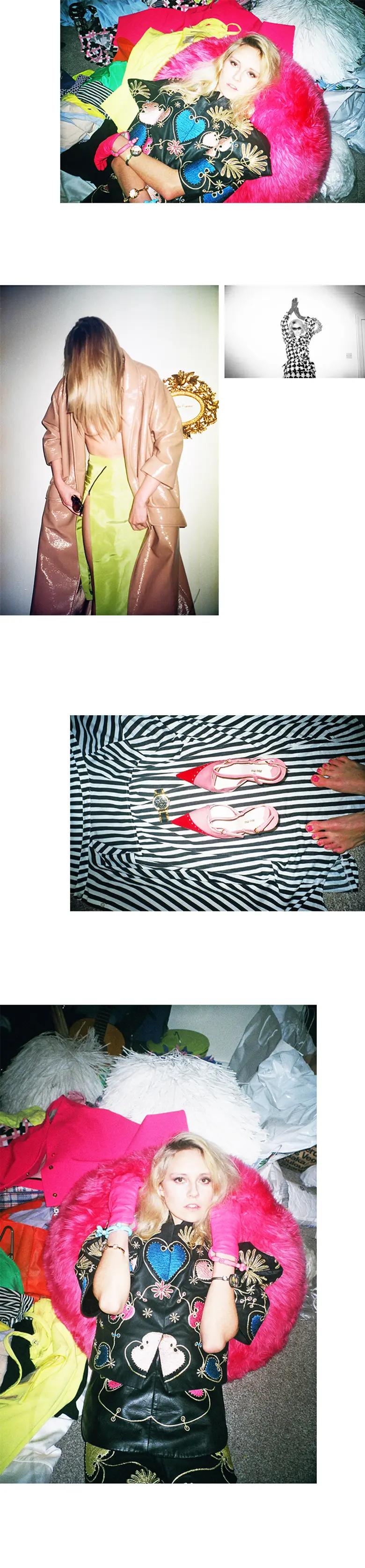 Black leather jacket with hearts by Osman, pink gloves by H&M and braclets by Miu Miu.