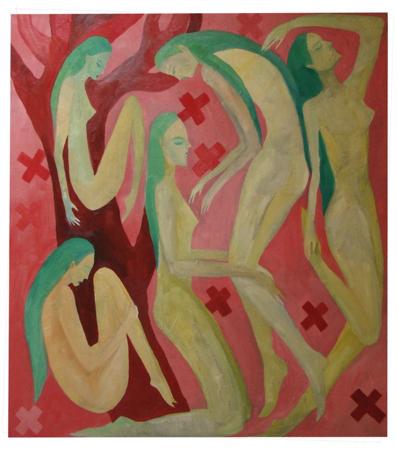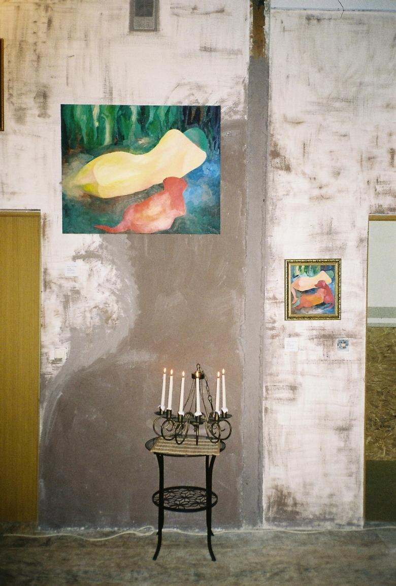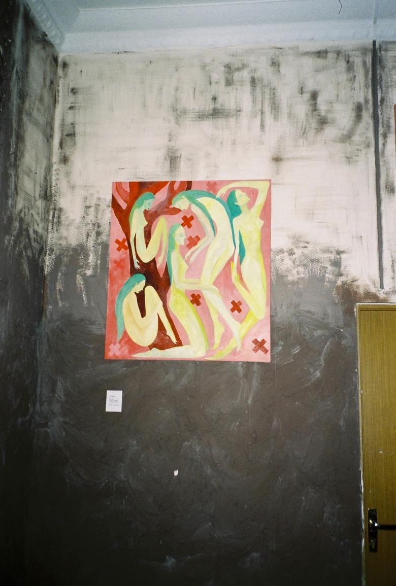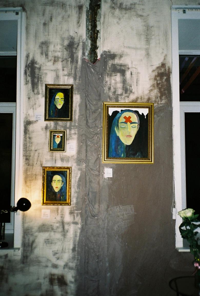 There are transitional paintings, which depicted the absorption of innocent souls by dark force . (‘untited- 1 ‘, ‘untitled- 2 ‘, ‘nude’, ‘the same nude’). The images of evil arising as glitches (‘pain’, ‘paint’).