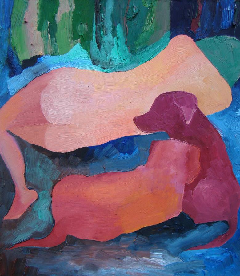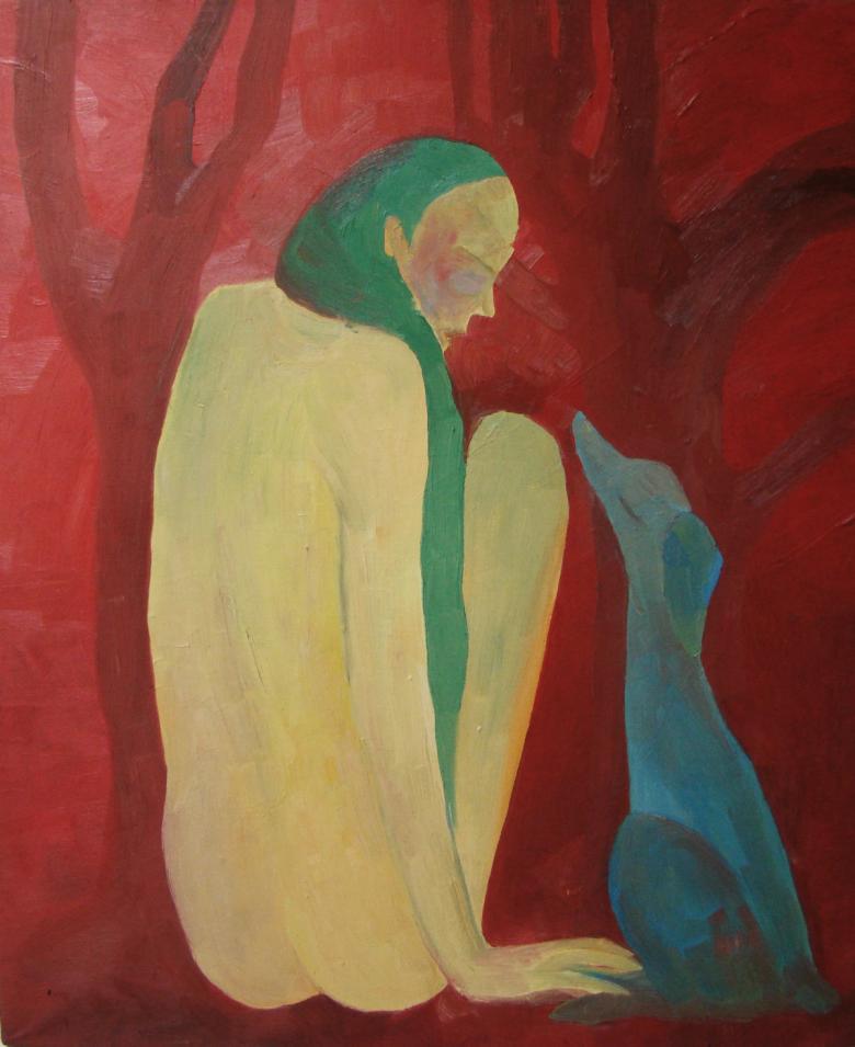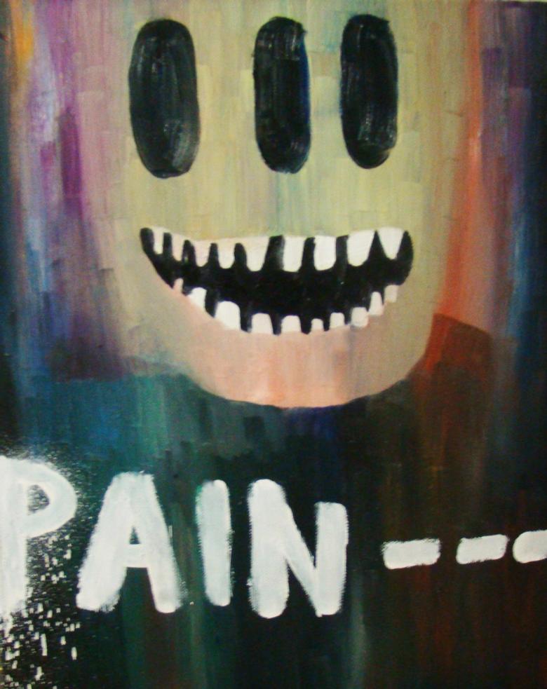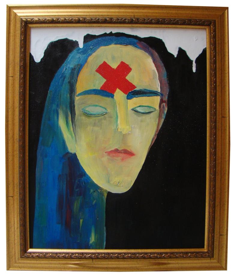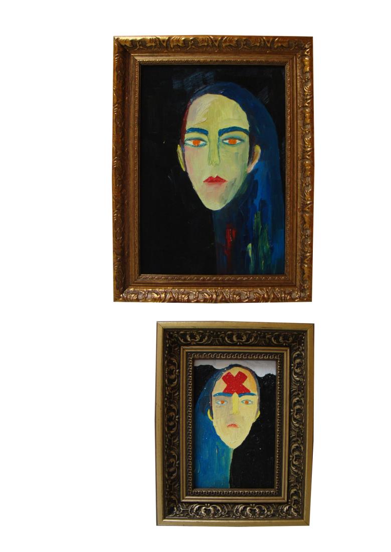 There are transitional paintings, which depicted the absorption of innocent souls by dark force . (‘untited- 1 ‘, ‘untitled- 2 ‘, ‘nude’, ‘the same nude’). The images of evil arising as glitches (‘pain’, ‘paint’).